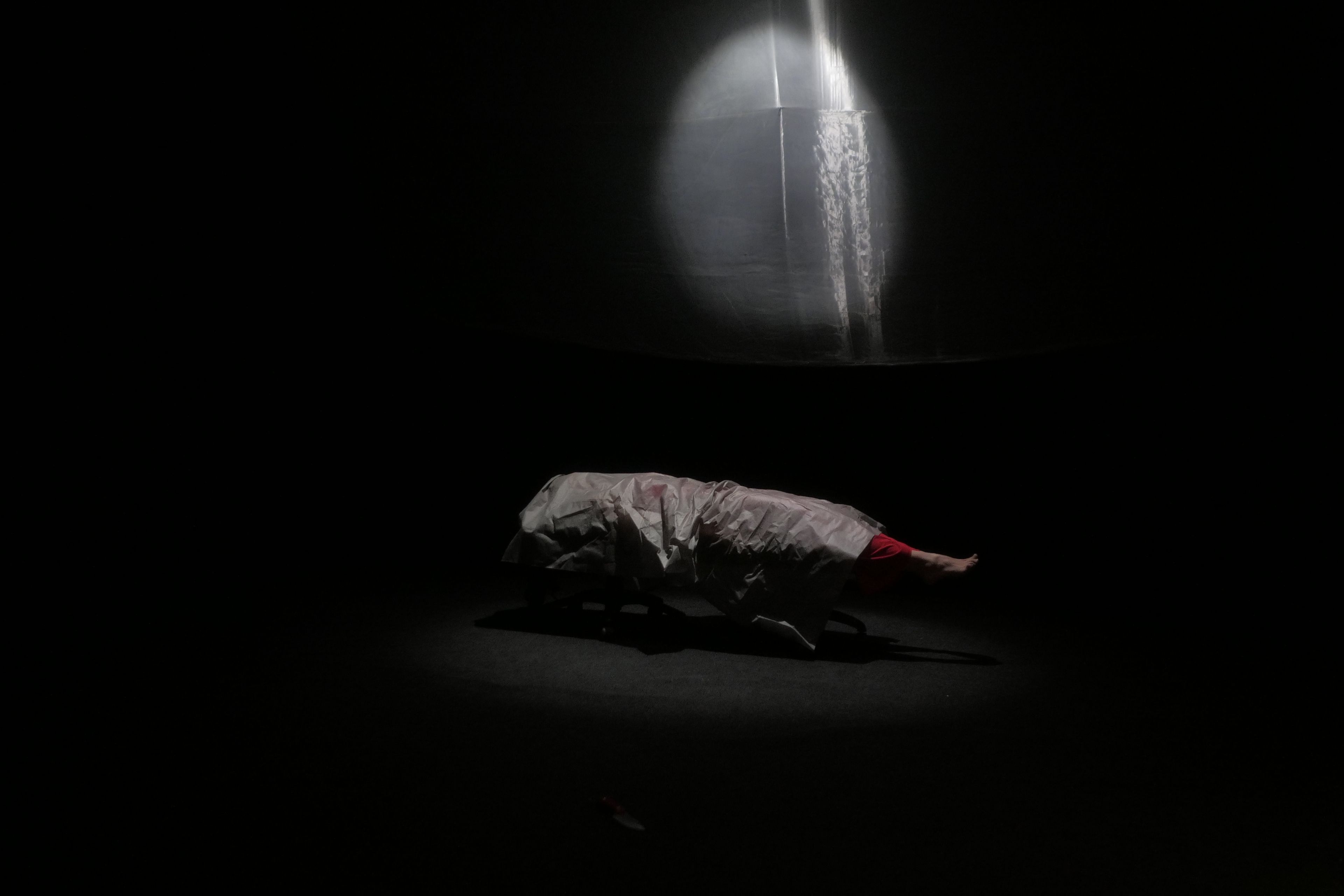 Спектакль Идиот — это минималистичные декорации, гипнотический визуал и хитросплетение снов с реальностью в духе мастера тревожного сюрреализма Дэвида Линча.